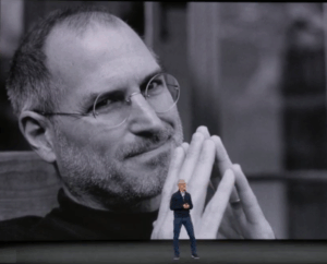 19:06:13 Na podium vchází Tim Cook a vzpomíná na Steva Jobse