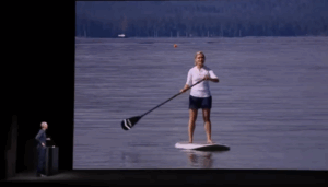 19:36:26 Příjemce hovoru při telefonátu pádluje na surfu uprostřed jezera