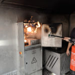Školitel ovládá přívod plynu i zapalování jednotlivých prvků. Účastníci školení se učí základní postup při likvidaci požárů postupně krok po kroku – od vyhození jističe nebo vytažení z elektrické přípojky, přes odjištění hasicího přístroje, až po samotnou likvidaci požáru a ovládání hasicího přístroje. Věděli jste například, že je efektivnější stříkat obsah přístroje v menších dávkách než najednou?